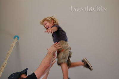 This is usually how our mornings begin these days. Only, normally, there is a 3 year old standing on the arm of the couch next to the armoir. He must have been on break in this picture. These figurines have become the latest decor in this specific place...all previous trinkets have been moved in order to provide more room for dinosaur roaming, and growling, and fighting (why must they fight?), and inevitably falling off of the mountain. I keep telling him that if all the dinosaurs keep falling off the mountain...they just might wind up extinct. Just an educated guess.